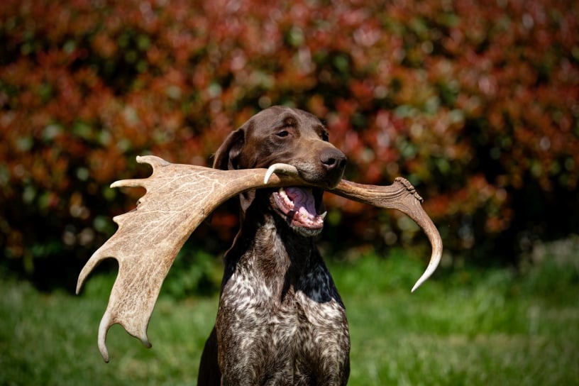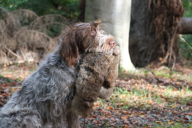 Van zodra 6 weken oud gaan we de pup alles voorschotelen, wat zijn buitdrift kan aanwakkeren. We gebruiken hiervoor alles wat de natuur ons ter beschikking stelt en een goede invloed KAN hebben op het instinct van onze leerling. Alle soorten wild of delen van wild kunnen hiervoor dienen.