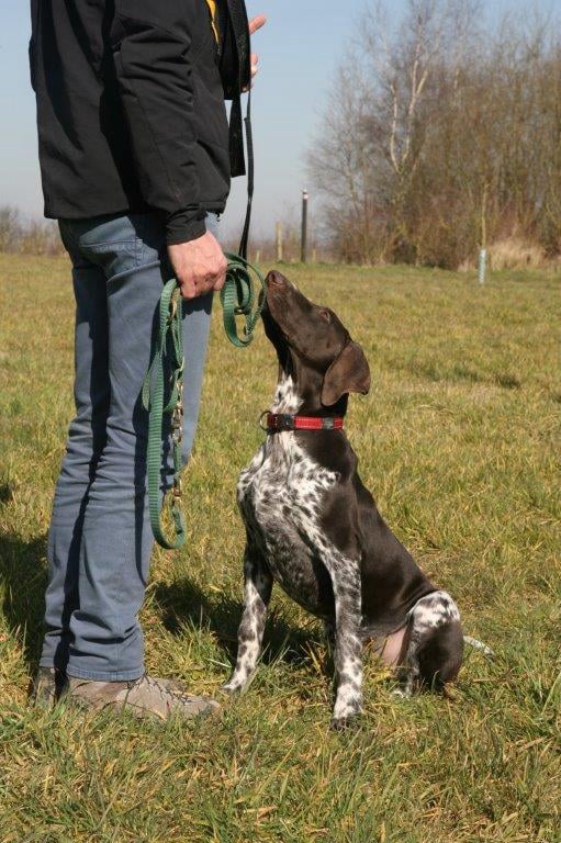 Het is van het grootste belang dat een hond gehoorzaam is en de basiscommando’s kent. U herkent het wel, het mooi volgen aan de lijn, het zitten en blijven op de plaats en uiteraard het komen als u hem roept en het kunnen stoppen van de hond op ieder moment! We beginnen onmiddellijk met de jonge pup als hij 8-12 weken is; immers is het van het grootste belang dat in dit vroege stadium onmiddellijk de juiste weg ‘bewandeld’ wordt. Het gaat er voornamelijk om dat in deze fase geen al te grote fouten gemaakt worden.